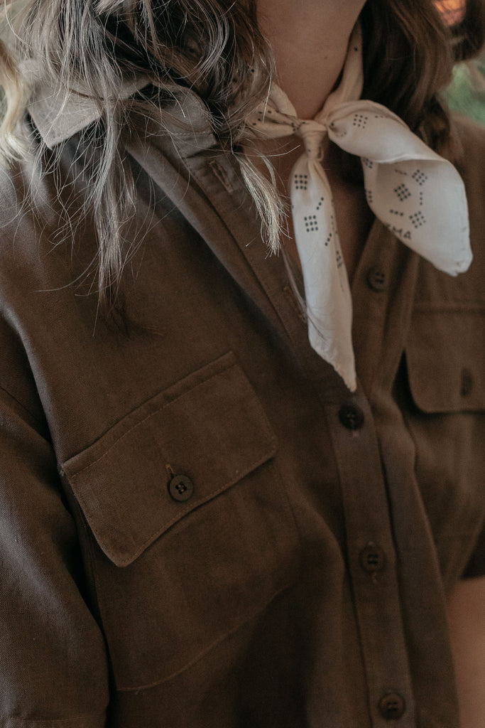 THE DOT HANKIE, Conch. PAINTER'S JUMPSUIT, Light Silk Linen, Earth.