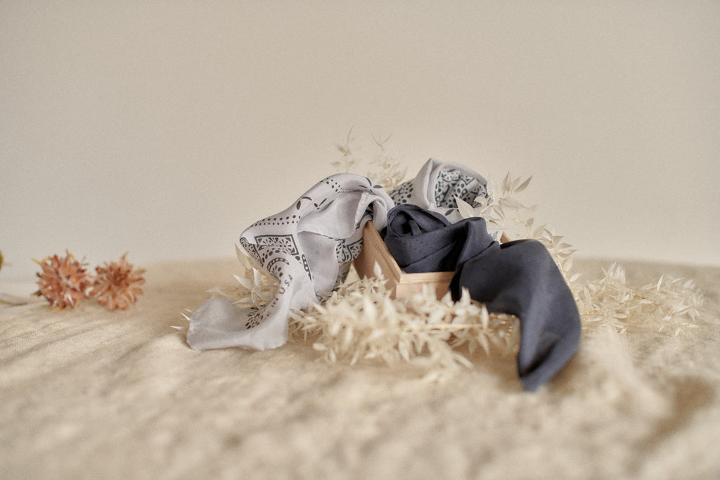 To up the ante on thoughtful-gift-giving-magic this season, we’ve put our signature OZMA bandana together with our classic hankie in a sweet gift set. Each bandana and hankie set comes as a pair of colors, pulled from our palette and inspired by nature and the California coast.