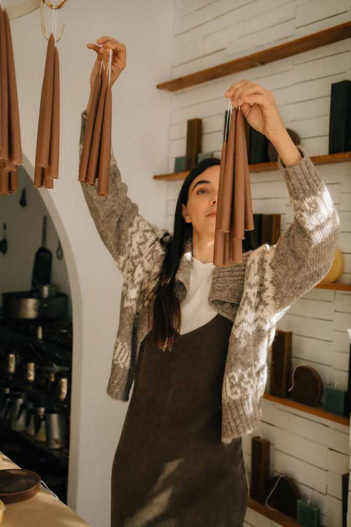At first I had an obsession with natural dyes, which led me to making my first product… my botanical crayons and once I’d introduced wax into my studio it became clear I should try making candles. Each pivot felt natural and was well received by my community, probably because I share a lot of my process and failures online…a place I naturally turned towards when I became a mother, seeking connection, validation and an outlet for my creative endeavors.