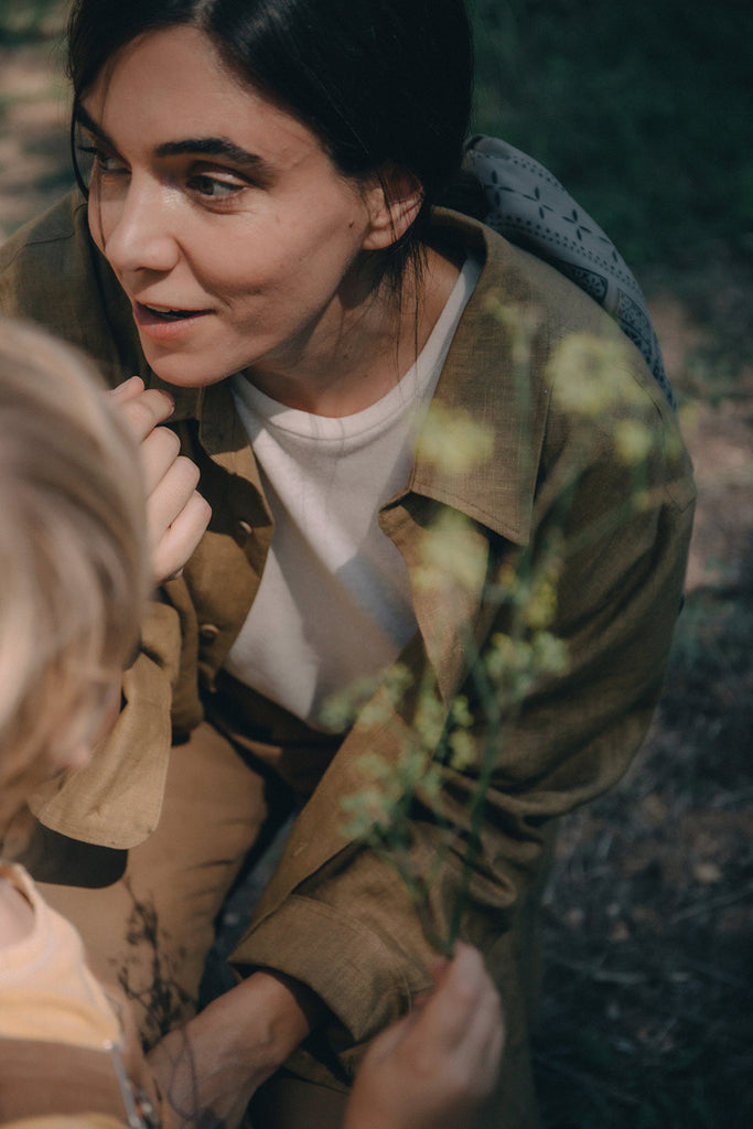 Clara wears the Vija Shirt, Lou Tee, and Field Pant.