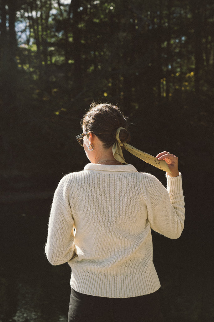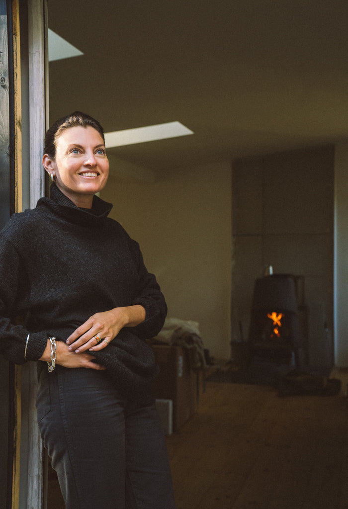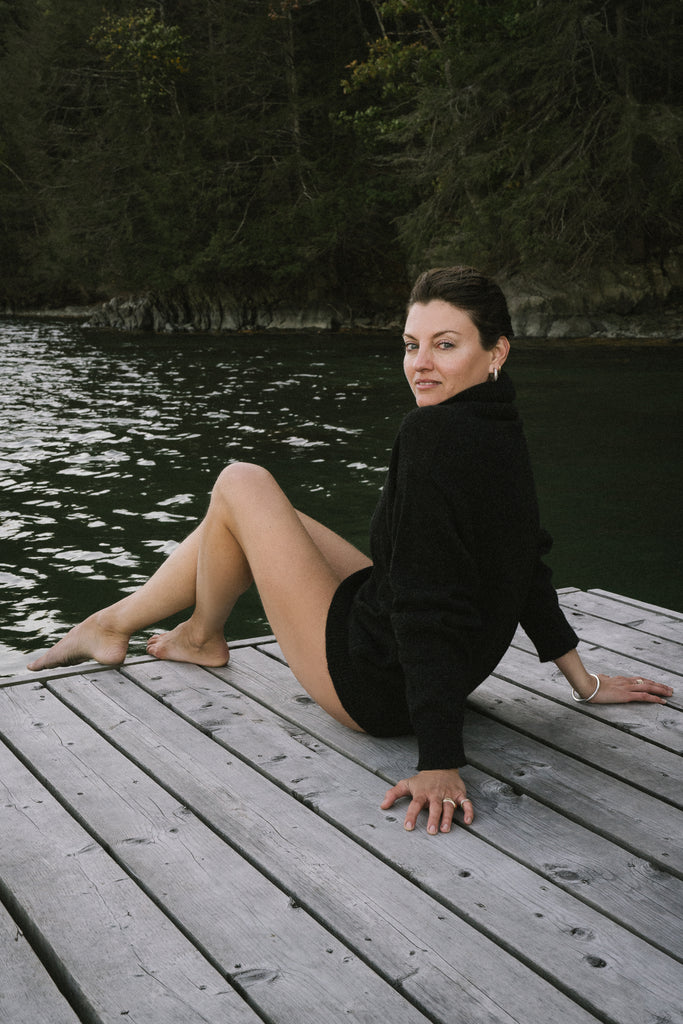 Kate wears the Maya Turtleneck and Eva Jumpsuit