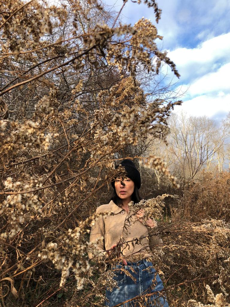 Lisa wears the Wilma Pullover and Sierra Beanie