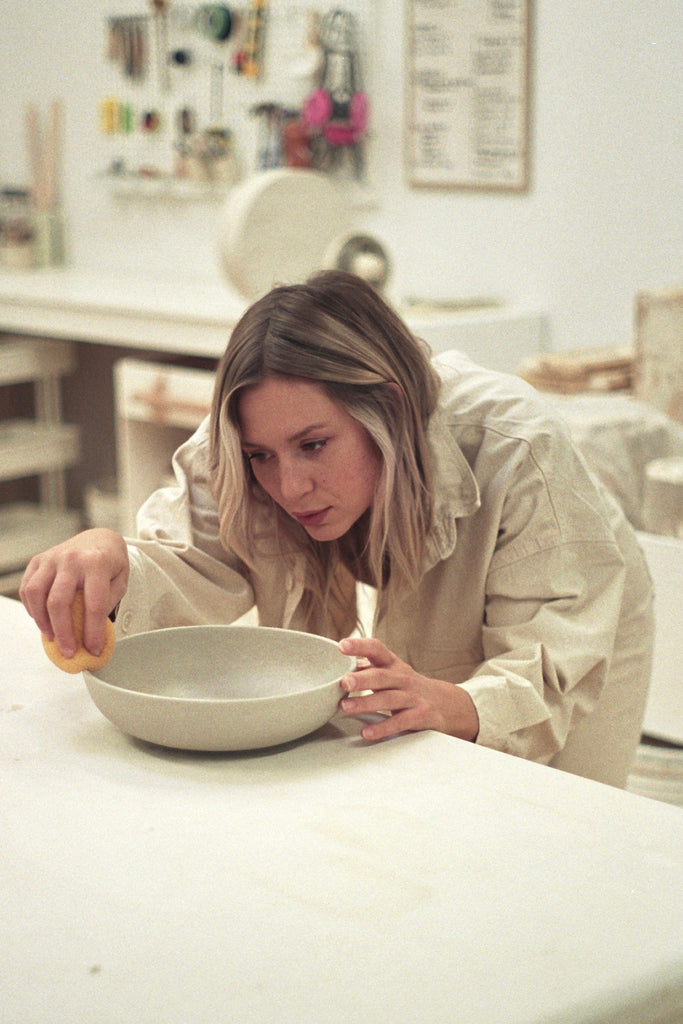 The intention is the spark that lights the flame. All of my pieces have specific and useful functions, and why I personally need/want them in my life is what starts the entire process. Internally, I can be very scattered, intense, and manic at times with a myriad of emotions, thoughts and ideas at play all at once. I like to create my exteriors in a way that’s tranquil and serene, to balance out how I feel at times. And I make ceramics to aid me in that endeavor. I make things like the Vanity Tray to keep my clutter contained and beautiful, the Phone Home to remind me of self-care and connection, and the Shelfie to get lost in a little dream world. The visual aspect of how a piece is formed is always the easiest because I value simplicity above all and don’t like to overcomplicate things. Most ideas just enter my mind in unprompted, simple visions, but it always starts with a feeling I wish to achieve within the object itself.