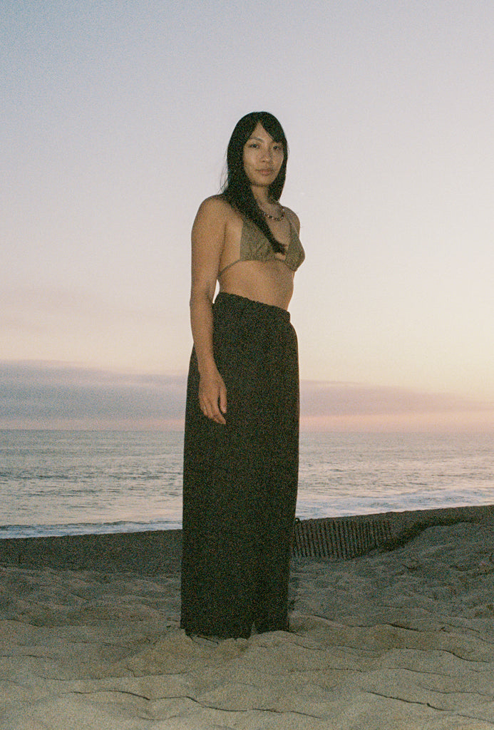 Sandy wears the Triangle Top and Crop Wide Leg Pant.
