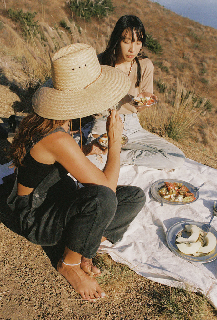 I cook outdoors every chance I get! I use flame and fire whenever I can and I get in the car and drive out of the city as often as I can. The natural world is my biggest inspiration. I’m always in awe of the ocean and its ever changing moods. I love seeing the mountains when I drive out of the city, especially as the sun is winding down and the skies in California are pink, purple and blue. I feel shot through the heart when I see the inside of a July flame peach, a Weiser yellow watermelon, or watch pink finger limes burst open. For me, there isn’t a sense of having to maintain connection to the natural world…I feel very lucky to be fully immersed in its presence in both my work time and down time.