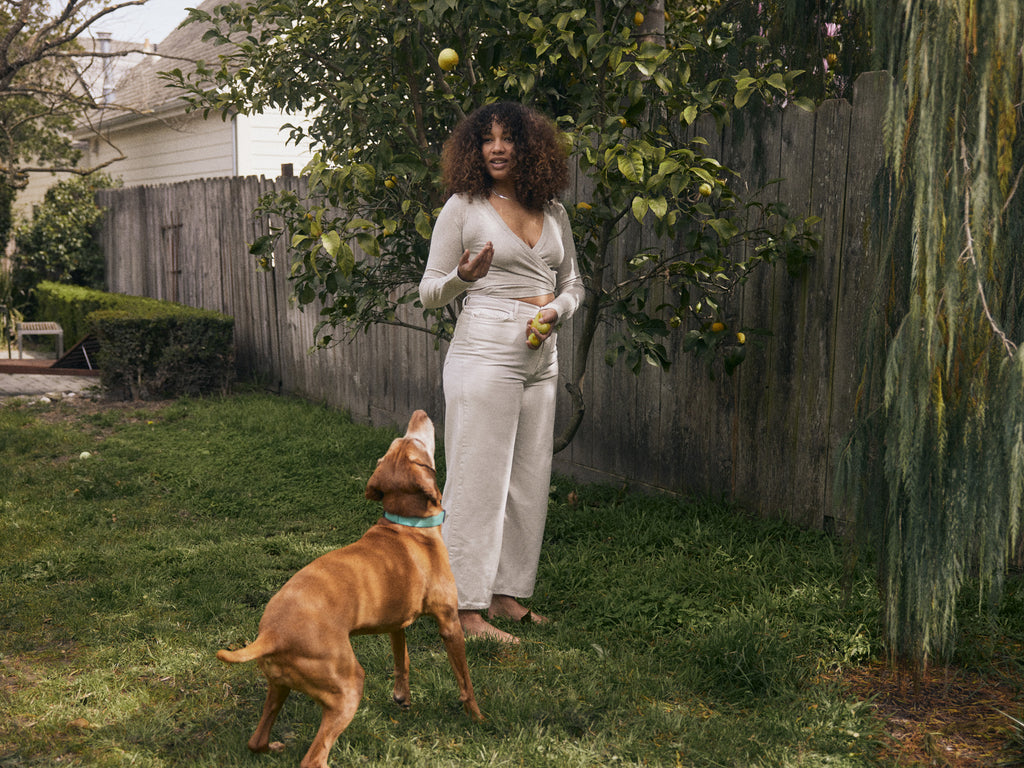 Eirinie wears the Spring Pullover and Grace Slip Skirt.