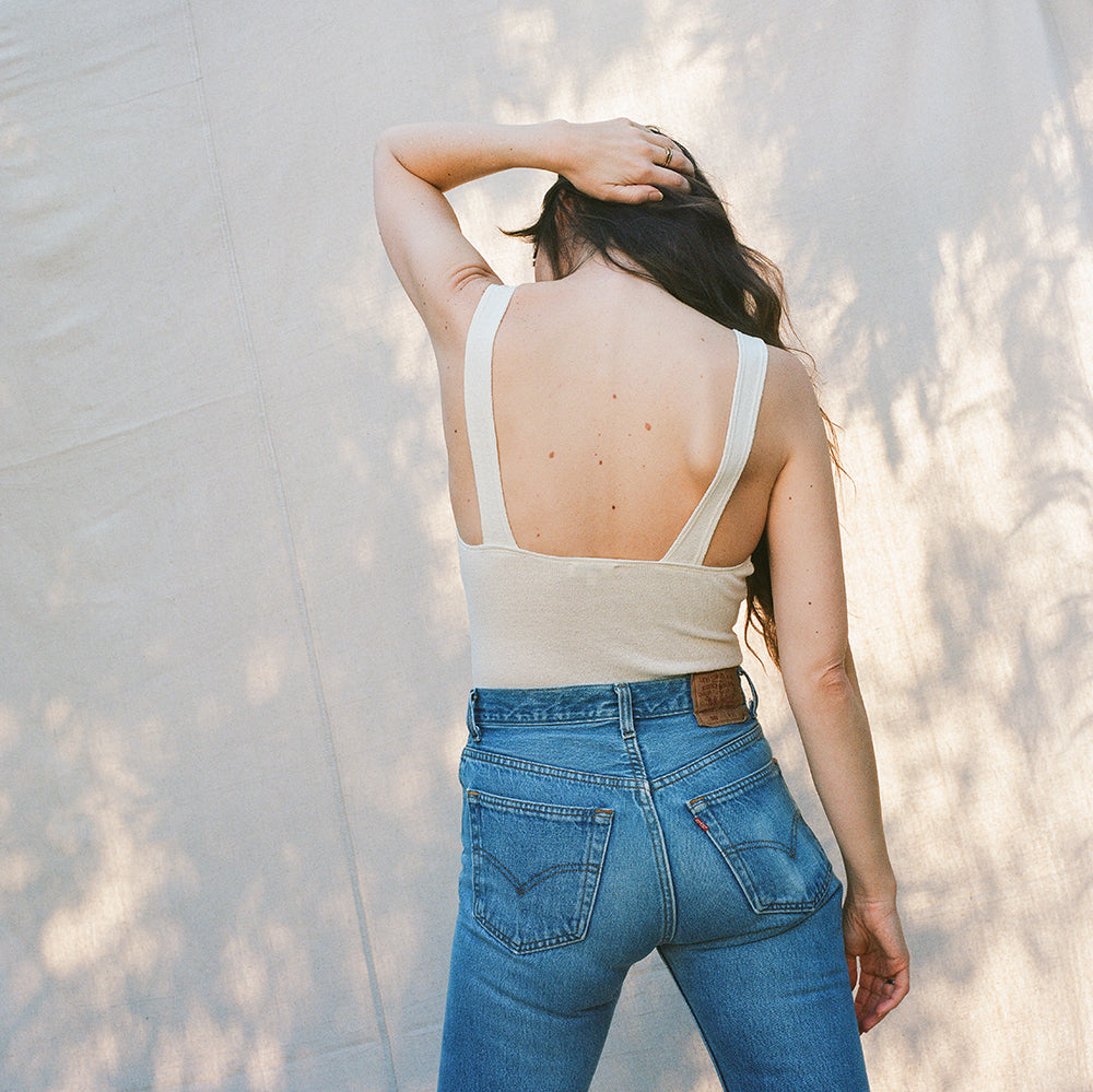 Lauren wears the Christy Bodysuit in Natural.