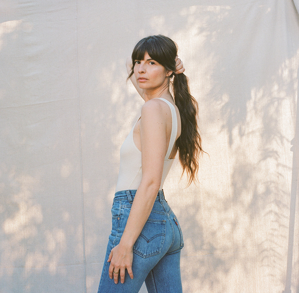 Lauren wears the Christy Bodysuit in Natural