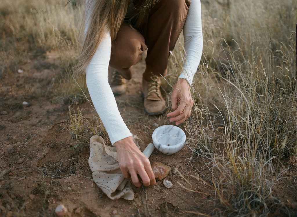 I’ve always been very sensitive to fibers and how clothing feels on my body, and it’s important to me the cloth be soft to the touch, natural materials, good for my body and for the earth. I want to feel comfortable and like myself, I want to have pockets where I can carry rocks or horse treats, and feel like I’m a space cowboy.