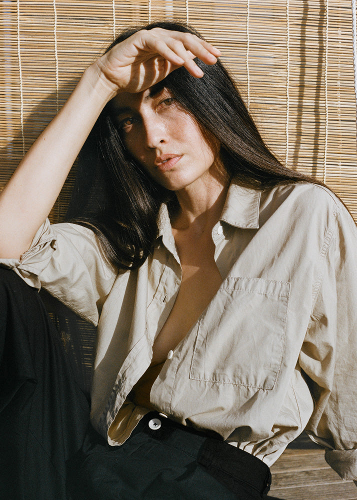 Our classic button down, single breast pocket, menswear inspired. Slightly longer in the back, and hits at the hip. Designed in Organic Poplin, it's soft and so easy to wear.